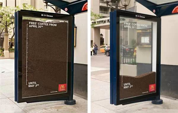 温哥华的公交候车亭被变成一个充满咖啡豆的“沙漏”,提醒客户促销的短期性质。